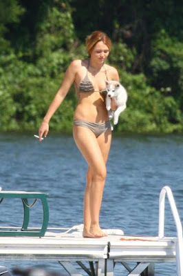 Bikini Babe, Miley Cyrus smokes a cigarette on Orchard Lake, Michigan