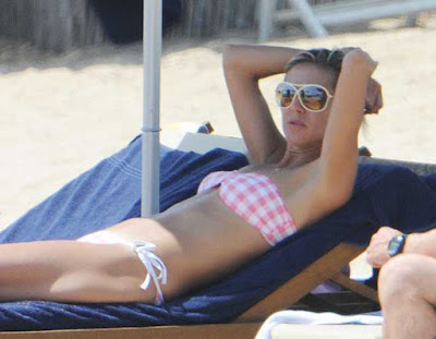 The “Project Runway” hottie looked amazing in her skimpy bikini as she played in the ocean with her kiddos and enjoyed the Porto Cervo weather.